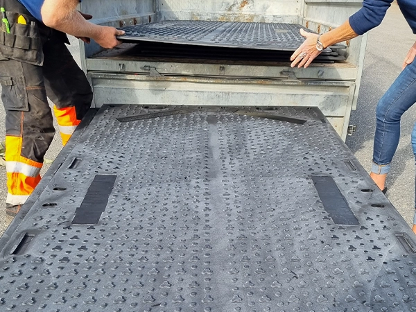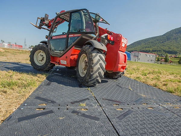 The mat also features two different traction surfaces – one optimized for vehicles and one for pedestrians – enhancing safety on site. A wide range of connection options makes it easy to create continuous access roads, staging areas, or work platforms tailored to project requirements.